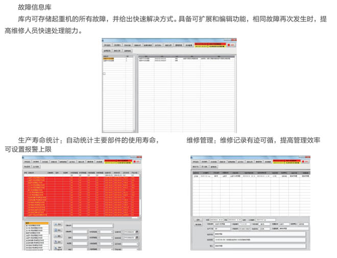 AGF系列起重機(jī)械安全監(jiān)控管理系統(tǒng)是我公司自主開發(fā)研制的產(chǎn)品,按照國質(zhì)檢特聯(lián)【2011】137號文件的要求,嚴(yán)格執(zhí)行國標(biāo):GB/T 28264-2017生產(chǎn),廣泛用于各行業(yè)大型起重設(shè)備機(jī)械、提升機(jī)、架橋機(jī)、港機(jī)、工程機(jī)械等,系統(tǒng)是為各種起重機(jī)的運(yùn)行監(jiān)視、診斷分析、設(shè)備預(yù)警與檢修維護(hù)而搭建的信息系統(tǒng)管理平臺。系統(tǒng)實(shí)時(shí)記錄起重機(jī)的運(yùn)行參數(shù)、操作記錄,當(dāng)滿足故障條件和設(shè)置預(yù)警值時(shí),系統(tǒng)及時(shí)提醒和記錄各種事件信息,為起重機(jī)的操作人員和維護(hù)人員提供實(shí)時(shí)的、詳盡的歷史數(shù)據(jù)和分析報(bào)表。起重機(jī)安全監(jiān)控管理系統(tǒng)具有可靠穩(wěn)定性、靈活交互性、便捷易用性,是集實(shí)時(shí)監(jiān)控﹑故障報(bào)警﹑數(shù)據(jù)登錄﹑設(shè)備維護(hù)﹑運(yùn)行統(tǒng)計(jì)于一體的現(xiàn)代起重機(jī)綜合信息管理平臺。