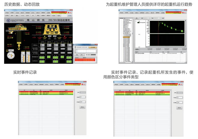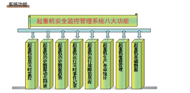 •- 通過起重機(jī)安全監(jiān)控管理系統(tǒng),運(yùn)行管理人員可以通過系統(tǒng)對起重機(jī)運(yùn)行中出現(xiàn)的故障進(jìn)行 查詢和處理;對設(shè)備及元器件進(jìn)行系統(tǒng)管理;指導(dǎo)定期對系統(tǒng)進(jìn)行維修和調(diào)試。系統(tǒng)具備以 下功能:實(shí)時(shí)狀態(tài)顯示、實(shí)時(shí)報(bào)警顯示、歷史記錄查詢、部件壽命監(jiān)測、事故診斷分析、數(shù) 據(jù)統(tǒng)計(jì)及權(quán)限設(shè)定管理等。
