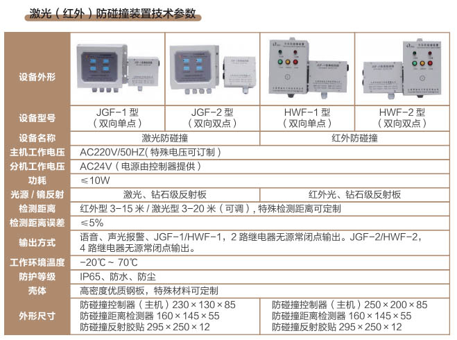 激光(紅外)防碰撞裝置技術(shù)參數(shù) 瀏覽:1180